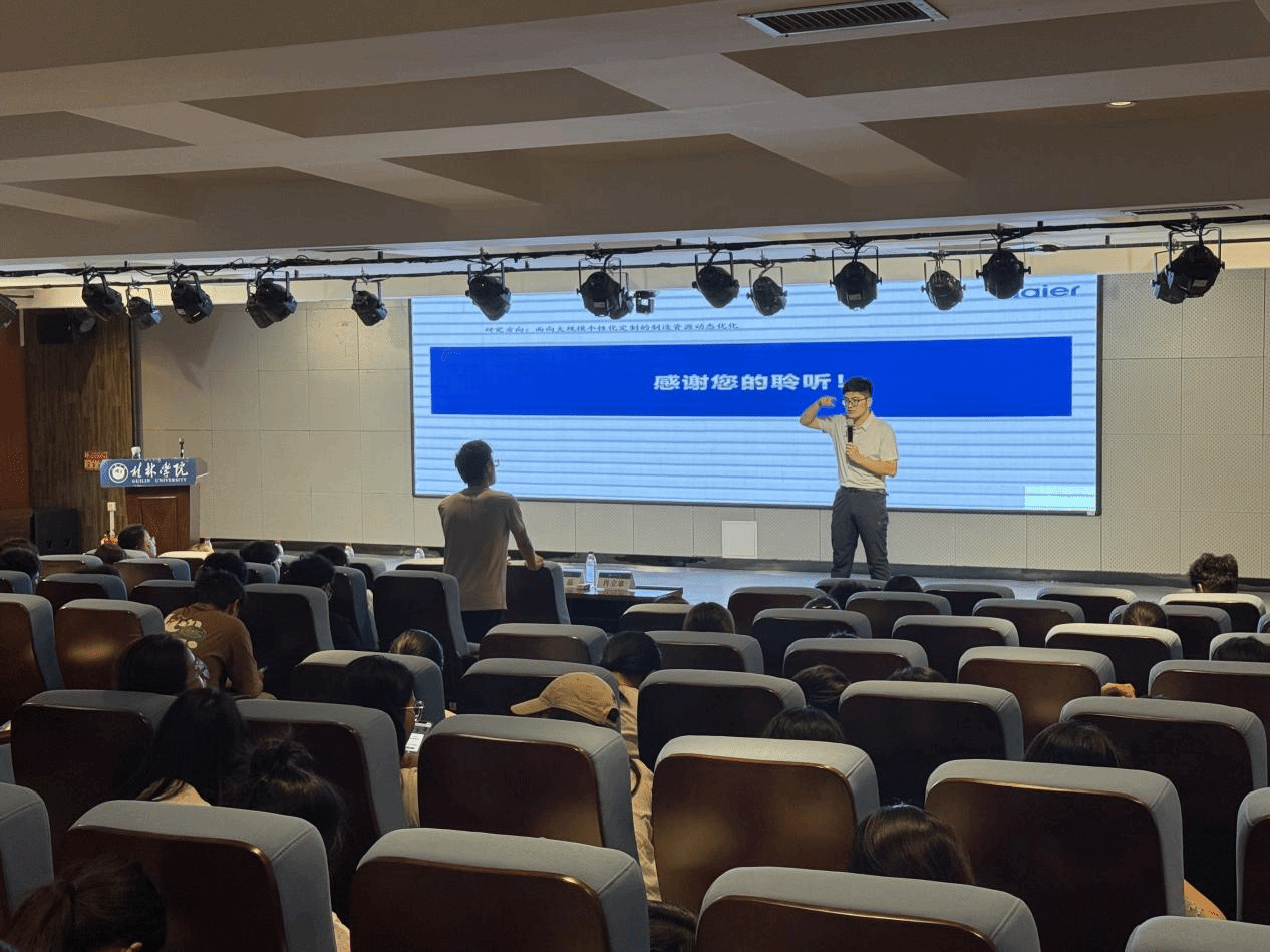 在工业4.0与智能制造浪潮席卷全球的背景下,朱建华博士首先系统梳理了大规模个性化定制模式的发展演进与当前制造业面临的现实困境。他深刻指出,传统大规模生产模式在应对日益增长的个性化、碎片化订单需求时,普遍存在响应迟滞、资源调度僵化、碳排放难以精准量化与管理等核心挑战。针对这些制约产业升级的关键难题,朱博士引领听众深入探索了前沿的解决方案。他详尽分享了其研究团队在车间资源动态调度智能算法、制造系统碳排放动态建模与可视化以及产品碳足迹全生命周期评价方法等一系列核心研究上取得的最新研究成果。在技术路径的剖析中,朱博士重点阐释了改进遗传算法、TSNSGA-Ⅱ混合算法、LSTM预测模型、状态空间建模等先进方法在实现高效调度与精细化碳管理中的创新应用。通过引入真实的工业案例与订单数据,他生动演示了如何构建从订单特征智能分析到多车间协同调度、从碳流实时监测到低碳运行策略优化的全链条技术闭环,充分展现了理论研究与工业实践深度融合的巨大价值与潜力。整场讲座持续两小时,内容翔实、视野开阔,在现场引发了热烈反响。在交流环节,与会师生就算法应用场景、数据获取路径、理论落地难点等问题与朱博士进行了深入探讨。