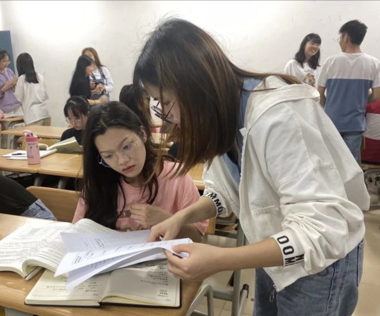 图三:韦珊与同学们进行经验分享