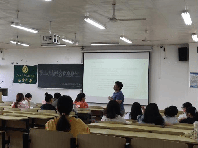 6月25日上午,广西桂林恒信会计师事务所所长符文凤来我校开展“论业财融合的重要性”专题讲座。讲座在1404教室举行,广西师范大学漓江学院经济与管理学院财务管理教研室主任庞仙梅老师与经济与管理学院学子参与了此次讲座。