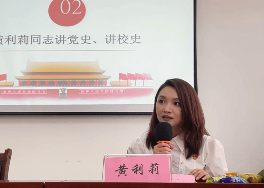 图1:2009届优秀校友黄利莉同志与同学们讲党史、讲校史