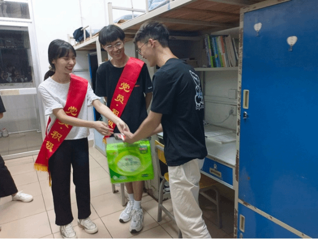 活动伊始,赵玲老师发表讲话,强调在活动过程中要注意礼貌问题,希望支部成员积极发挥党员先锋模范作用,为新生树立良好的榜样,随后开始有序走访新生宿舍。走访过程中,赵玲老师首先向经管新生表达了真诚的问候,在亲切交谈中,叮嘱同学们遇到困难要及时跟老师沟通,规划好大学四年生活,合理利用时间,学好专业知识,提高自己的综合素质。期间,党支部成员了解新生入学后在学习、生活和思想等方面的困惑,并给予适当的建议,同时端正新生的入党动机,鼓励新生积极向党组织靠拢。活动尾声,党支部成员向新生送上慰问品。