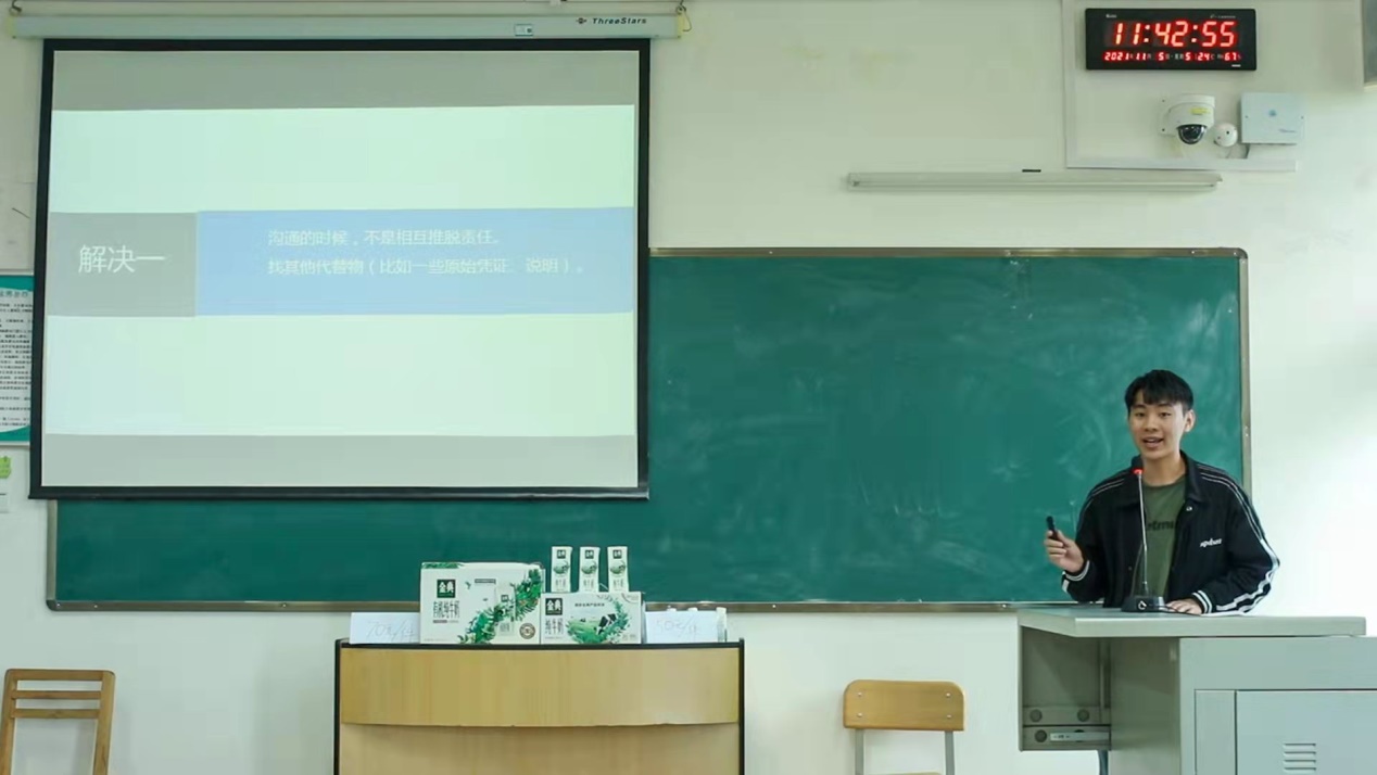本次课程内容分为场景模拟和翻转课堂。场景模拟分小组进行,小组成员分角色模拟销售员和不同类型性格的顾客,以销售牛奶为场景,销售员通过性格分析,选择适合的方式方法对不同性格的顾客进行沟通和销售, “对症下药”,将自己手上的牛奶推销出去。在本次场景模拟总结中,唐咸平老师指出,“通过学习情商培养与训练课程,让同学们了解不同性格的特点,认识他人性格特点的时候更好的去选择沟通方式以求解决问题,但同时要明白,沟通是手段,前提是商品是有品质保证的,没有保证的商品用手段那是欺骗,不可取。做任何事情一定要有道德底线,讲原则,守法律。