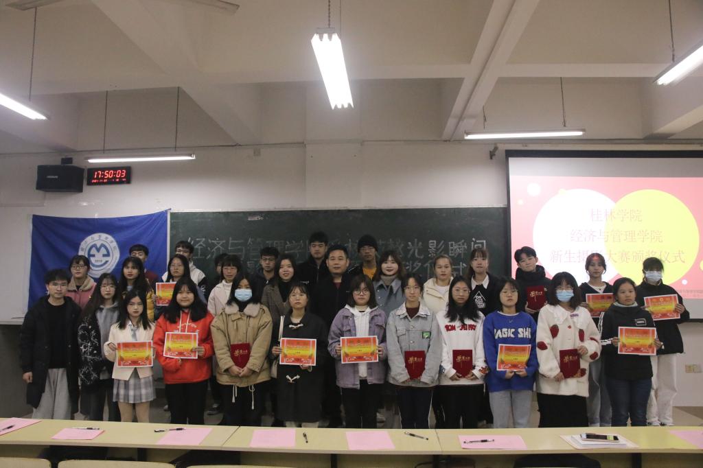 11月22日下午,2021级新生爱校荣校“光影瞬间”摄影大赛颁奖仪式在1214教室顺利开展,此次颁奖仪式目的在于表彰获奖同学,弘扬爱校精神。莅临本次颁奖仪式的嘉宾有经济与管理学院党总支副书记韩磊、团总支书记刘竹青、团总支副书记赵玲、新生辅导员吴东艳、以及经济与管理学院团总支学生会主席团书记团成员。