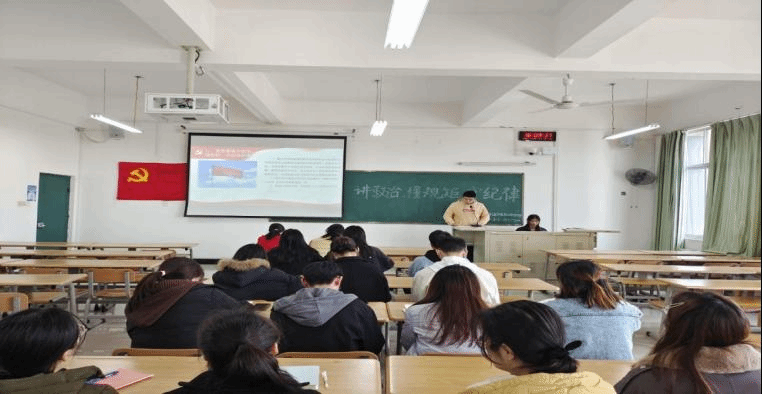 为落实全面从严治党,强化纪律规矩意识,切实增强党员同志的政治觉悟和纪律修养。11月24日,经济与管理学院第四学生党支部于3413教室开展以“讲政治、懂规矩、守纪律”为主题的党日活动。支部书记郝环一同志和副书记贺春先同志出席此次会议,支部全体成员参加。
