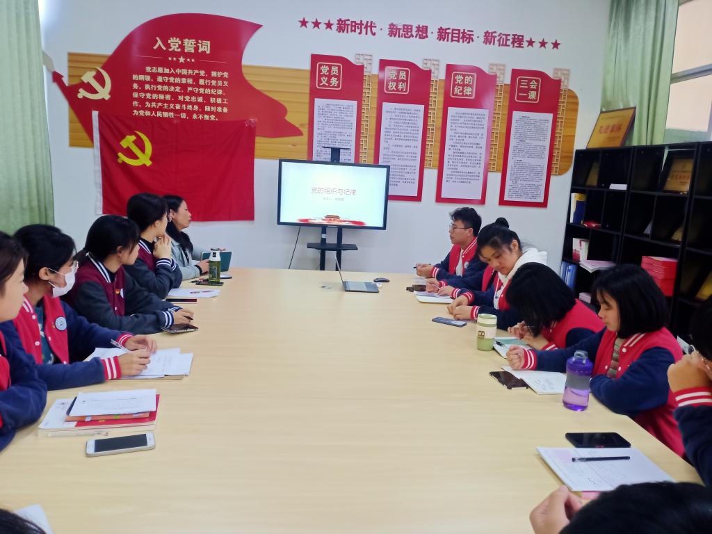 为了严明党的组织纪律,增强党员的纪律意识。11月25日,经济与管理学院第五学生党支部全体党员,在党支书记谢鹃霞的带领下在3505党员活动室,深入学习党的组织纪律内容。
