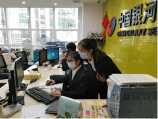 中国银河证券中山中路营业部方面,由周旺经理带领同学们了解中国银河证券营业部的运营情况、业务流程、人员结构,以及组织同学们进行证券相关业务的操作培训和合规风险教育,力求培养和教育合格的证券经纪人。同时也给6名同学分配对应的业务导师,目前进行了营业部销售业务的相关实践内容。