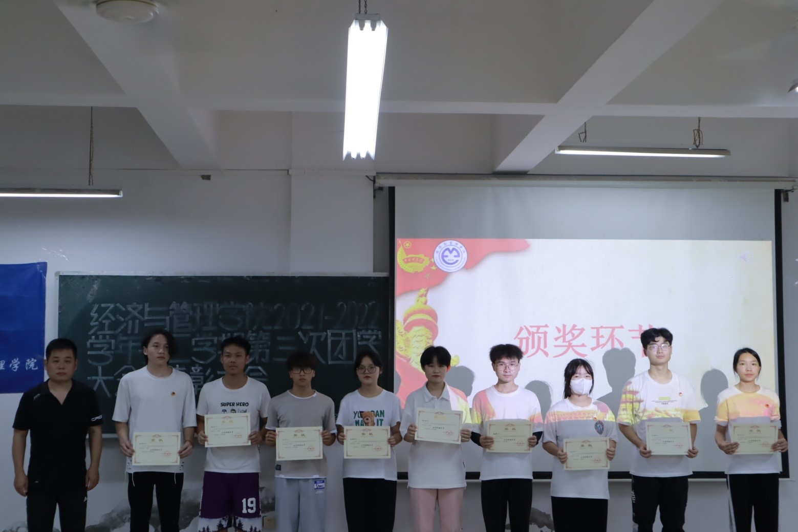 会议伊始,经济与管理学院团总支学生会各部门代表上台发言,对本学期的工作总结和下学期的工作计划进行汇报。接着,韩磊老师为近一年工作突出的学生干部们颁发了“工作积极分子”和“先进个人”荣誉证书。最后,刘竹青老师对本学期经管团学工作进行总结,提出希望各团学干部们能够以“向学向善,自律自强”为起点、“善·学·致·用”为支点,端正学习态度,始终用纪律和原则规范自身,打造更加和谐优秀的经济与管理学院。赵玲老师也提出学生干部当有“五来神掌”即要有“让我来”的主动和自信,“跟我来”的热情和担当,“一起来”的能力和意识,“你先来”的谦让和豁达,在谦让中积极向上,“向未来”的格局和胸怀。让我们秉承这样的信念让经济与管理学院在我们的共同努力下越来越好,再创新的辉煌。