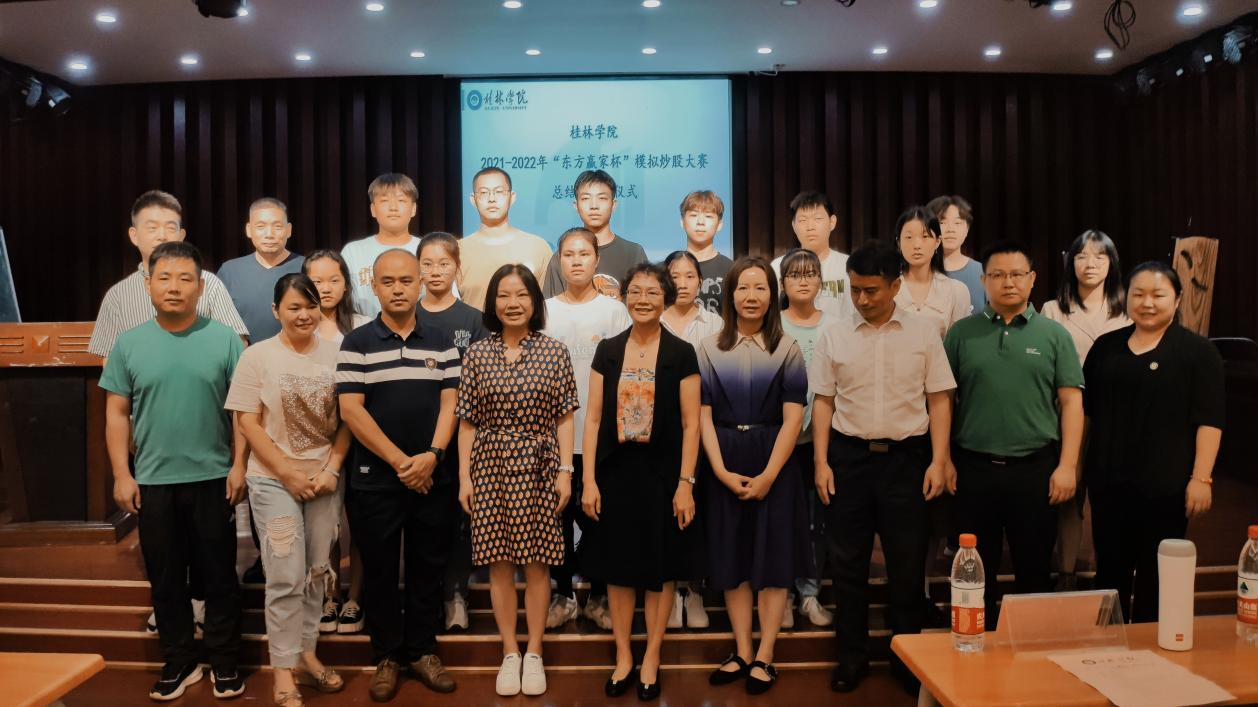 6月24日,我院于音乐厅举办2021-2022年“东方赢家杯”模拟炒股大赛总结暨颁奖仪式。祝芸芸副校长、东方证券桂林中山中路营业部黄明海总经理、广西证券期货基金业协会龙慧娟副会长、广西上市公司协会杨芳副秘书长、经济与管理学院相关领导老师以及参赛选手等参加活动。