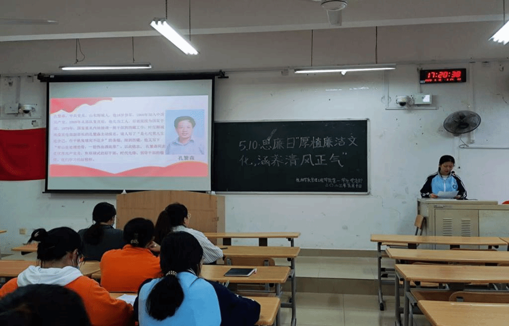5月10日下午,管理工程学院第一学生党支部在1209教室举行5.10·思廉日“厚植廉洁文化,涵养清风正气”主题党日活动。管理工程学院第一学生党支部书记石盼盼、副书记黄淑娟以及支部全体成员参加此次活动。