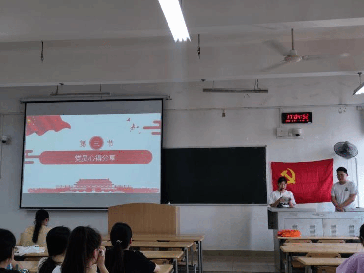 活动开始,主持人宣读活动目的及意义后,全体肃立奏唱《国际歌》。而后邀请学生党员分享其与学校的故事,学生党员表示要积极发挥党员的先锋模范作用,从小事做起,以身作则,为学校的发展和进步贡献自己的力量,争做一名的合格共产党员。最后,由书记郝环一老师做总结发言,她向支部成员介绍学校近些年的卓越发展,希望所有学生党员能够心怀感恩之心,做一个有使命感和责任感的人,并指出学生党员应该严格要求自己,认真履行党员义务,不忘初心、牢记使命,保持奋斗的激情。