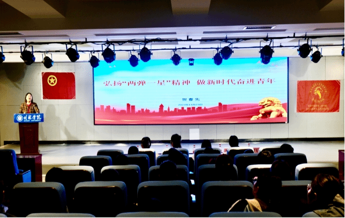 活动伊始,贺春先副教授以“两弹一星”先辈事例开篇,讲解“两弹一星”精神对学员们的学习、生活具有重大意义,以于敏、邓稼先、郭永怀等先辈们为例子,真正诠释伟大的“两弹一星”精神。在研制“两弹一星”的过程中,老一辈科学家们怀着对祖国的深深热爱和对科技事业的坚定信念,无私奉献、自力更生、艰苦奋斗。他们克服了无数的困难和挫折,以卓越的智慧和毅力,成功地研制出了“两弹一星”,为中国的科技事业书写了辉煌的篇章。