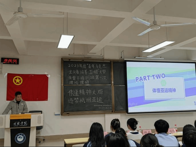 11月21日19:20,管理工程学院在1314教室开展2023年度“青年马克思主义者培养工程”大学生骨干培训班第一次理论课程学习,此次学习以“传递精神火炬,逐梦杭州亚运”为主题。出席本次讲座的嘉宾有桂林学院管理工程学院党总支书记韩磊,桂林学院管理工程学院团总支书记赵玲,桂林学院管理工程学院书记团、主席团成员。
