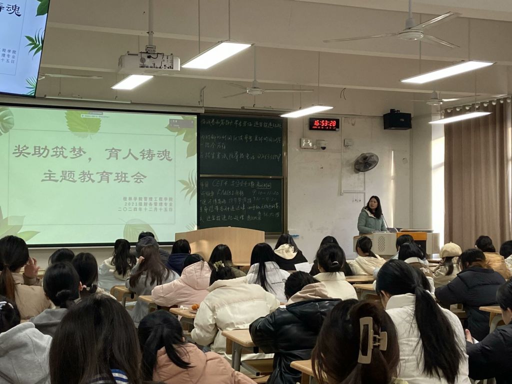 2024年12月15日,管理工程学院各专业班级组织了主题班会,以班会和家校沟通促进学生成长,彰显奖助学金育人作用。各专业通过主题班会对获得奖学金同学表达了充分的认可,并鼓励其他同学以此为榜样,激发自身的学习动力,向学生传递积极的价值观和人生观。通过树立一批成绩优秀、自立自强的典型,用身边的真实事例激励家庭经济困难学生积极进取、刻苦学习、立志成才。