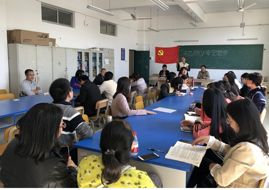 10月30日下午,经济与管理学院党总支在3307教室举行党日活动暨“不忘初心、牢记使命”主题教育学习成果交流会。学院全体教工党员参加了交流会。