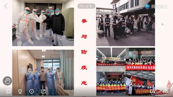 此次党日活动分为五个部分,分别是:同舟共济,共克时艰;最美逆行,抗疫英雄;青年力量,志愿服务;我是党员,我承诺;汇聚合力,“疫”起战斗。