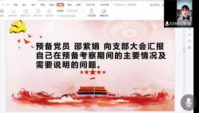 6月18日上午12:10,经济与管理学院第二学生党支部在腾讯会议上组织召开预备党员转正大会,支部全体党员参加会议。经济与管理学院第四学生党支部书记郝环一,第五学生党支部书记谢鹃霞列席会议。