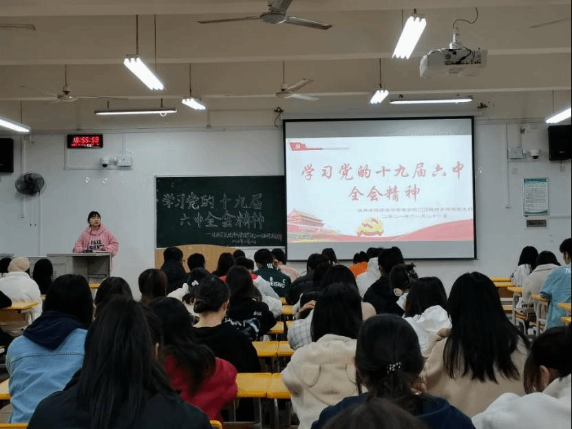 会议开始,主持人郑如萍通过讲解PPT和播放相关视频的方式,为团支部成员解读包括三个“需要”、五大“历史意义”、十个“坚持”等在内的十九届六中全会精神。紧接着,团支部成员踊跃分享自己的学习心得。其中,卢雪霞同学发言说到,我们要深刻学习党百年奋斗的历史经验,积极主动培养自己的党性修养,有明确的政治意识,爱党爱国,做一名心中有党、心中有国的大学生。最后,辅导员赵玲老师指出,作为时代的领路人,要从党的百年党史中汲取智慧和力量,延续红色血脉,传承红色精神,始终保持奋发有为的拼搏精神,把青春奋斗融入党和人民的事业,坚定“听党话、跟党走”的信心和决心,在新的征程上更加坚定自觉地牢记初心使命自力更生,奋发图强。