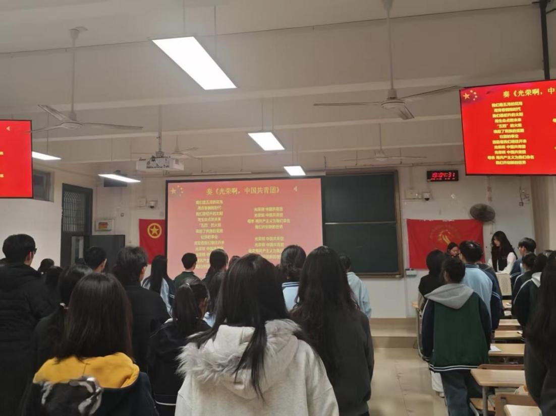 活动在庄严的团歌声中拉开帷幕。全体师生肃立齐唱《光荣啊,中国共青团》,激昂的旋律点燃了全场气氛,展现出青马学员奋发向上的精神风貌。主持人随后介绍了本次理论学习的背景与目标,强调本次课程是深化理论武装、强化使命担当的重要环节。