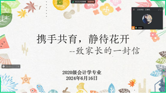 为了进一步加强家校互联,让家长了解学校、了解学生在校的学习、生活,进一步强化发挥家校合力育人的作用。管理工程学院联合“青言青语”网络思政工作室于6月12日—18日开展“携手共育,静待花开”致家长的一封信活动,管理工程学院领导班子、全体辅导员、全体学生家长参与本次活动。