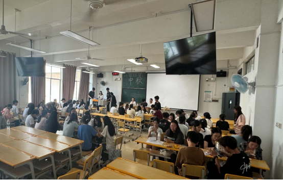本次中秋联欢活动分为室内与室外两个场地,分别在1414教室和风雨球场开展,活动丰富多彩,包括你画我猜、猜灯谜、传说故事、中秋美食、月饼发放、抢凳子、才艺表演、套圈活动等环节。在活动开始前,辅导员为新生们进行了开场寄语,用亲切温暖的话语表达了对新生们的关怀和祝福。接下来的“你画我猜”和“猜灯谜”等活动,不仅加深了同学们对中秋节的了解,也增强了他们之间的交流与合作,展示了团队精神;传说故事、中秋美食、月饼发放等环节,让新生们深入了解中秋文化,培植爱国情怀;抢凳子、才艺表演、套圈活动等环节激发同学们的活动积极性,渲染中秋欢乐氛围。这些充满趣味性的活动让新生们在轻松愉快的氛围中感受到了传统节日的魅力,激发了他们对新学期的热情。