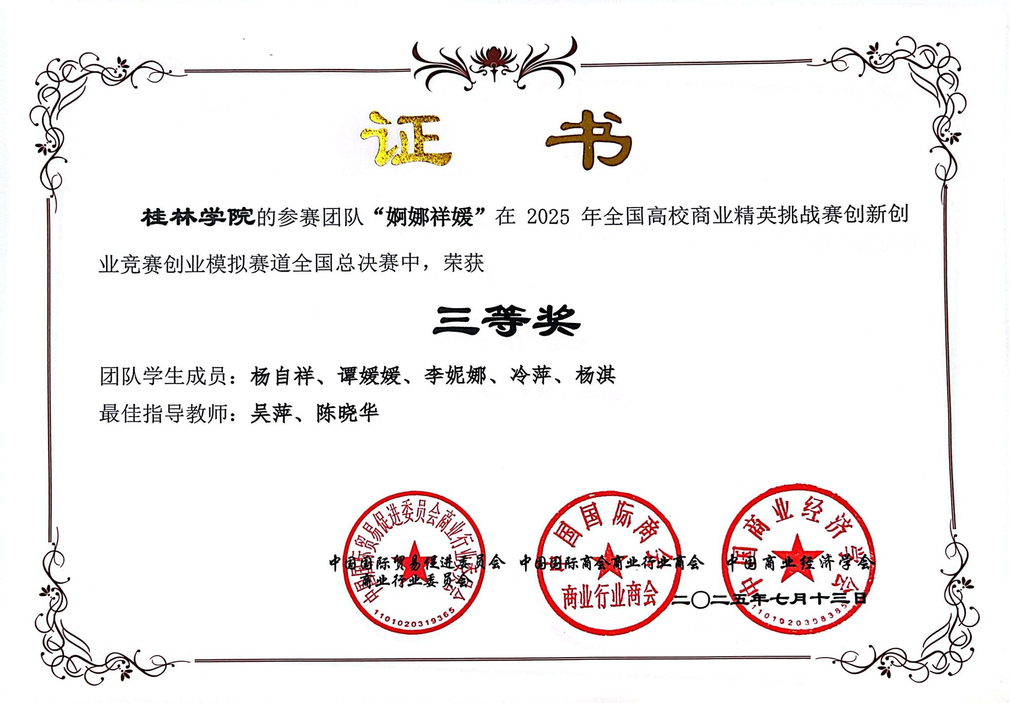 图3:获奖证书(婀娜祥媛队)