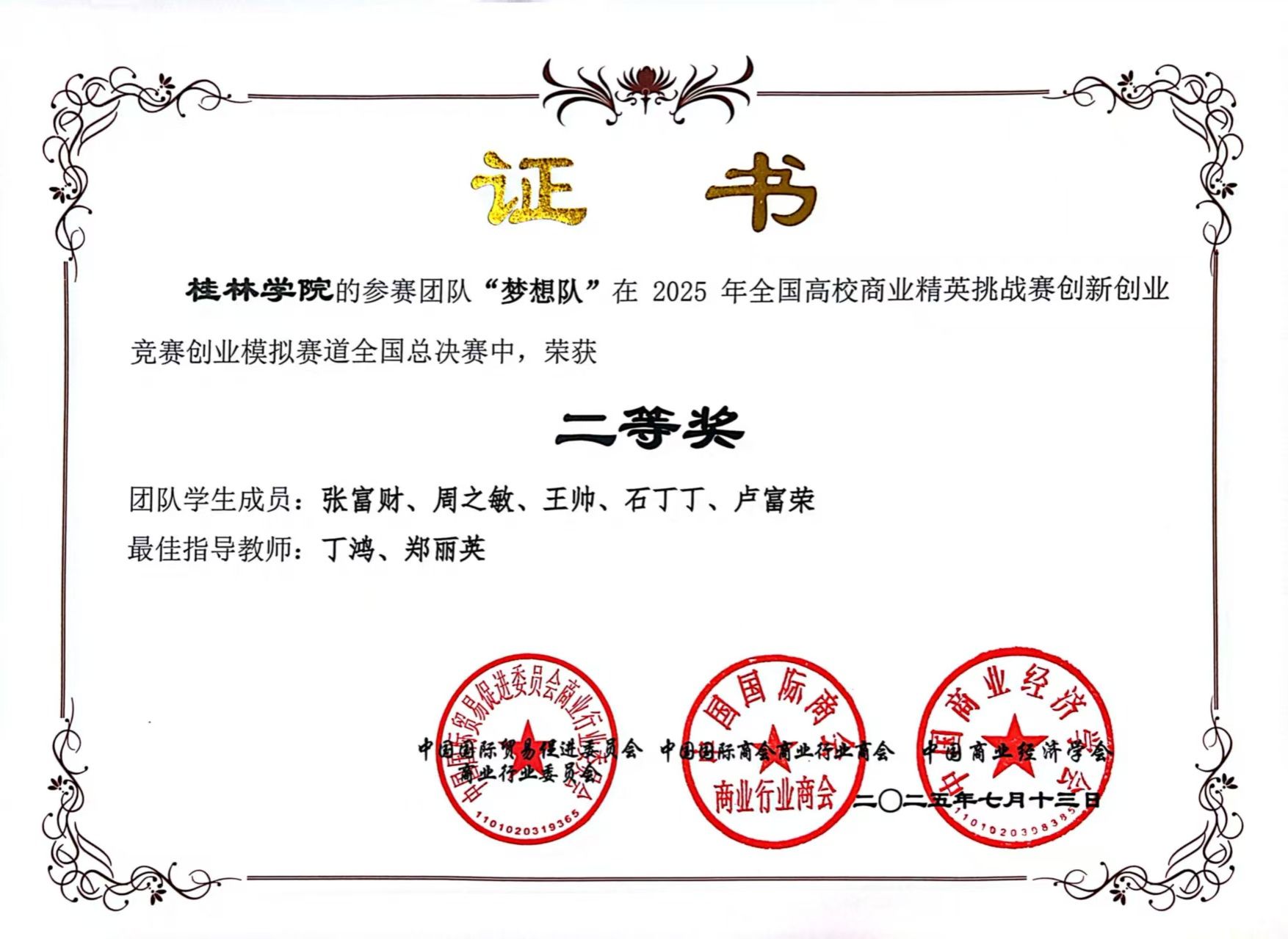 图2:获奖证书(梦想队)