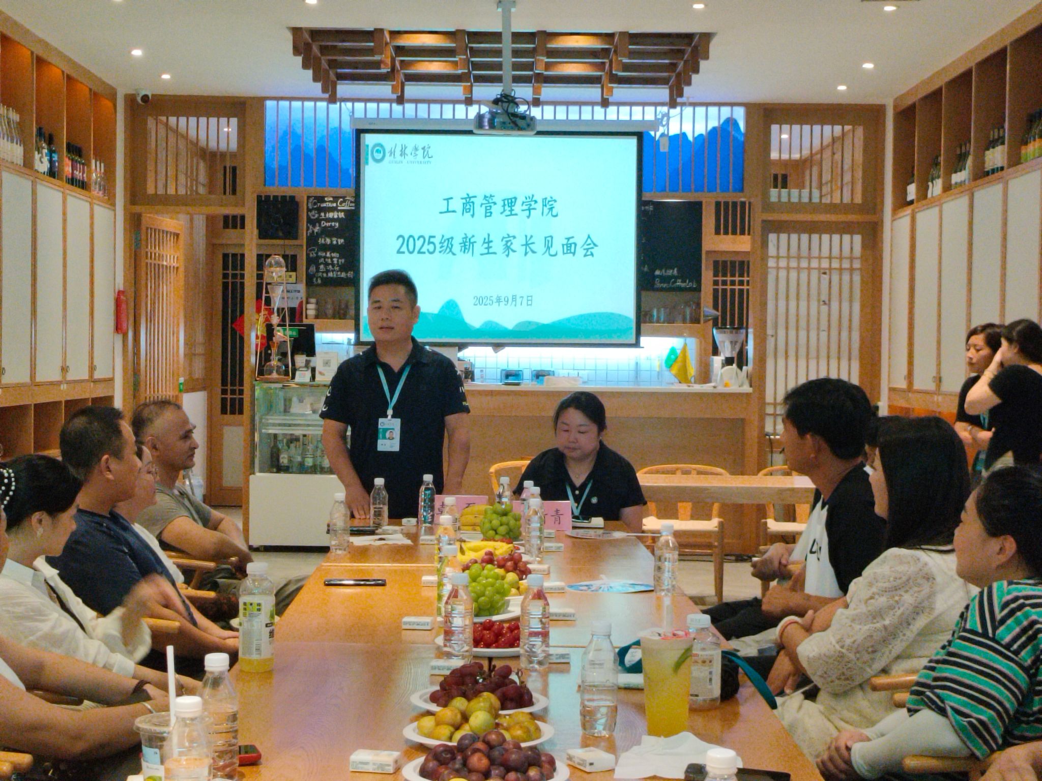 为搭建学校与家庭间高效沟通的桥梁,帮助新生家长全方位了解学院办学特色、培养模式及学生管理体系,助力新生更快融入大学环境、规划成长路径,9月7日,工商管理学院在大益茶室召开2025 级新生家长见面会。学院院长、党总支书记、新生辅导员及30余名新生家长参会。