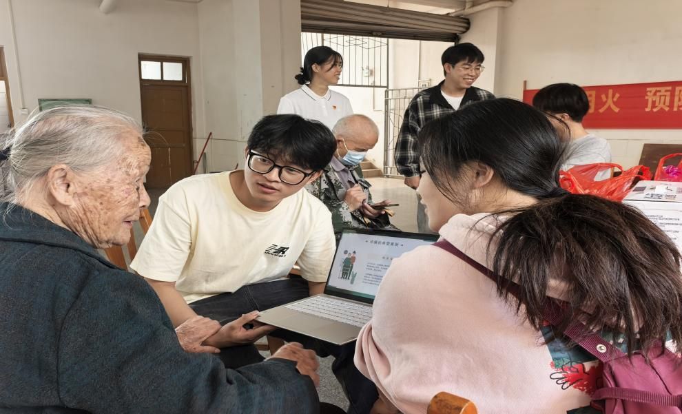 为积极响应学校迎评促建工作号召,充分发挥学生党员在评建中的先锋模范作用,11月10日,工商管理学院数智先锋学生党支部组织党员走进会仙敬老院,开展“智慧助老”进社区志愿服务活动。