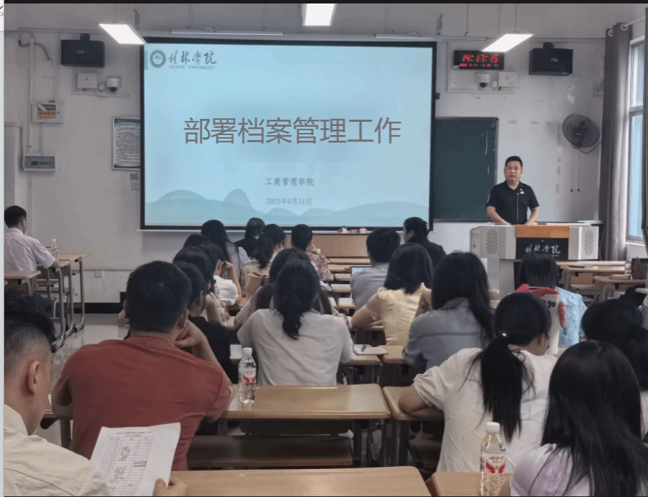 6月11日,工商管理学院在3410教室召开全体教职工大会,布置学院档案工作的计划。此次会议由党总支书记主持,旨在通过档案管理,进一步提高学院的教学质量和科研水平。