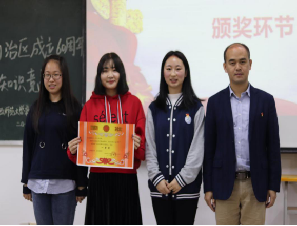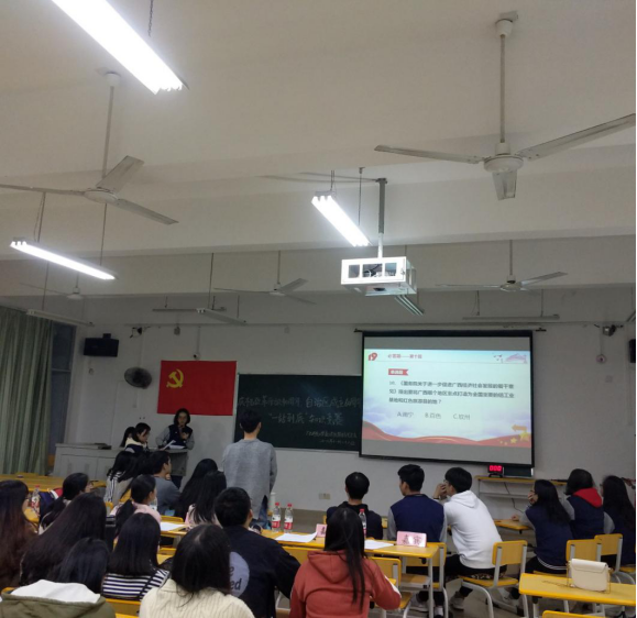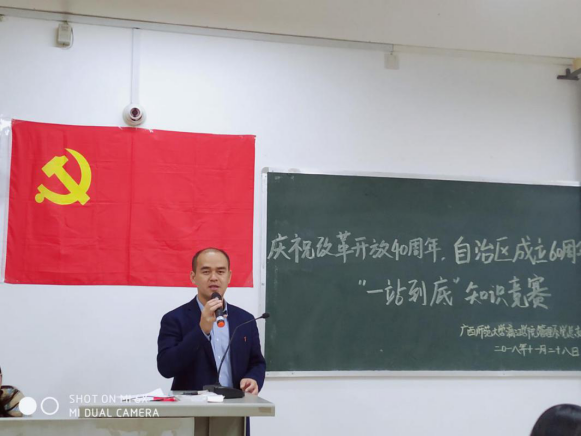 今年是改革开放40周年和自治区成立60周年,为庆祝这一伟大历史成就,管理系党总支于11月28日在1505教室举行知识竞赛活动,活动由管理系第二学生党支部承办。管理系党总支书记甘华成老师以及各学生党支部书记出席了本次活动。