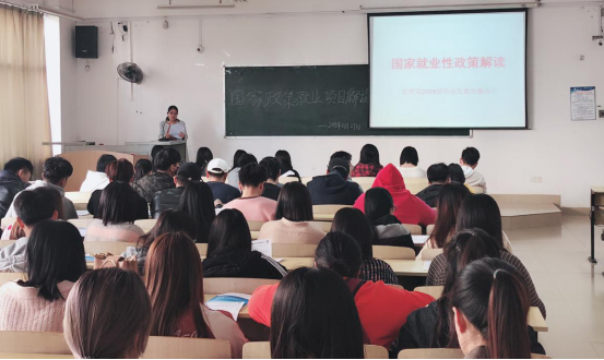 为帮助学生学习了解国家有关大学生就业的政策法规,运用国家的政策法规指导就业实践,使学生了解明白就业形势的严峻性,艰巨性。自觉转变就业观念,调整就业预期,11月27日下午,管理系毕业生大学生就业国家政策性项目解读大会在教室1317举行,会议由管理系辅导员毛春英老师主讲,工商管理毕业班同学参加大会。