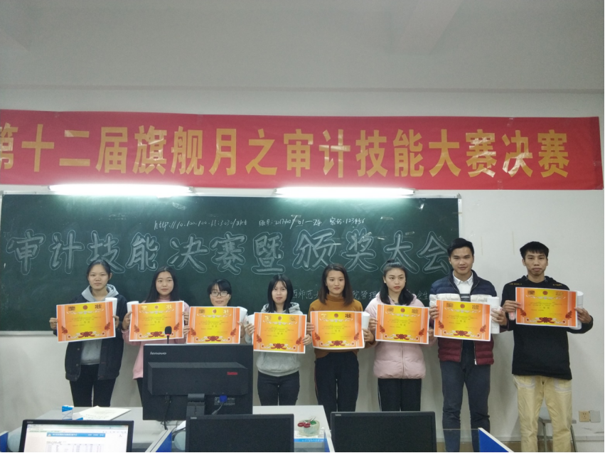 决赛结束后进行了颁奖大会。首先是由审计技能大赛的指导老师郑丽英老师讲话,郑老师表示了对各位同学积极参加此次比赛的感谢,也祝贺各位获奖的同学,希望明年的比赛各位同学也可以积极参加。本次审计技能大赛共评选出一等奖一组,二等奖两组,三等奖两组,优秀奖一组,各位获奖同学均获得了相应奖状和奖品。
