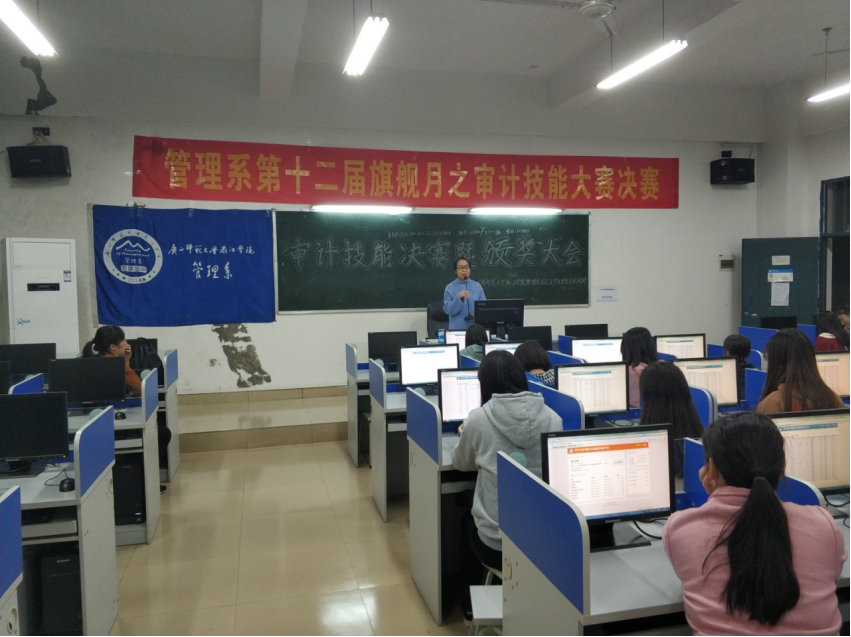 2018年11月26日19时,在郑丽英老师和匡淼云老师的带领下,管理系2018年旗舰月活动之审计技能大赛决赛在6243机房成功举办。经过一个月的宣传、初赛,审计技能大赛即将落下帷幕。