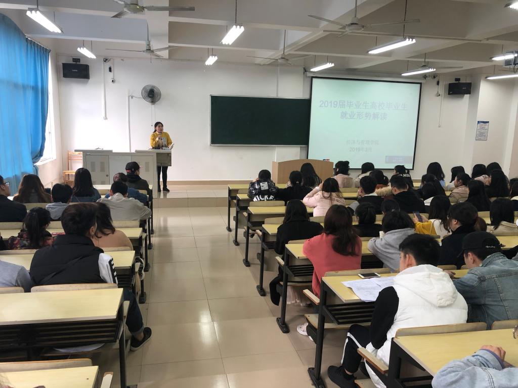 此次就业形势讲座帮助同学们了解到财务管理专业往届毕业生就业情况,并正确地认识到当前大学毕业生的就业形势,提出了合理有效的就业建议,有利于提升学生的就业竞争力,促进经济与管理学院2019届毕业生就业工作顺利开展。