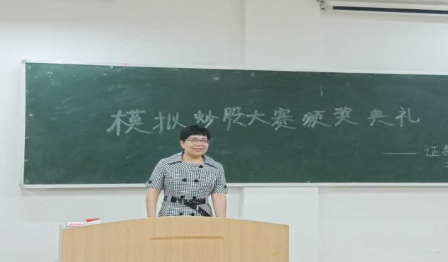 颁奖典礼伊始,主持人致开场词,宣布了到场嘉宾以及简要介绍了本次比赛的流程。随后由邢祎老师对本次炒股大赛进行总结,她肯定了同学们在本次模拟炒股大赛中取得的优异成绩,同学们在通过一个月的角逐,涌现出了一批对炒股有着天赋和经验的同学。紧接着,证券学社对这些优秀的同学进行了表彰。其中获奖的前三名同学中有两名同学是证券学社会干,这充分说明了在社团中学到的知识能让同学们在炒股中学以致用,能更多更好地探索炒股的奥秘,解开股市的神秘面纱。最后成绩优异的同学上台与大家分享了自己的炒股经验,使在场的同学们对炒股有了不一样的认识,更深层次地了解到了炒股的技巧性。