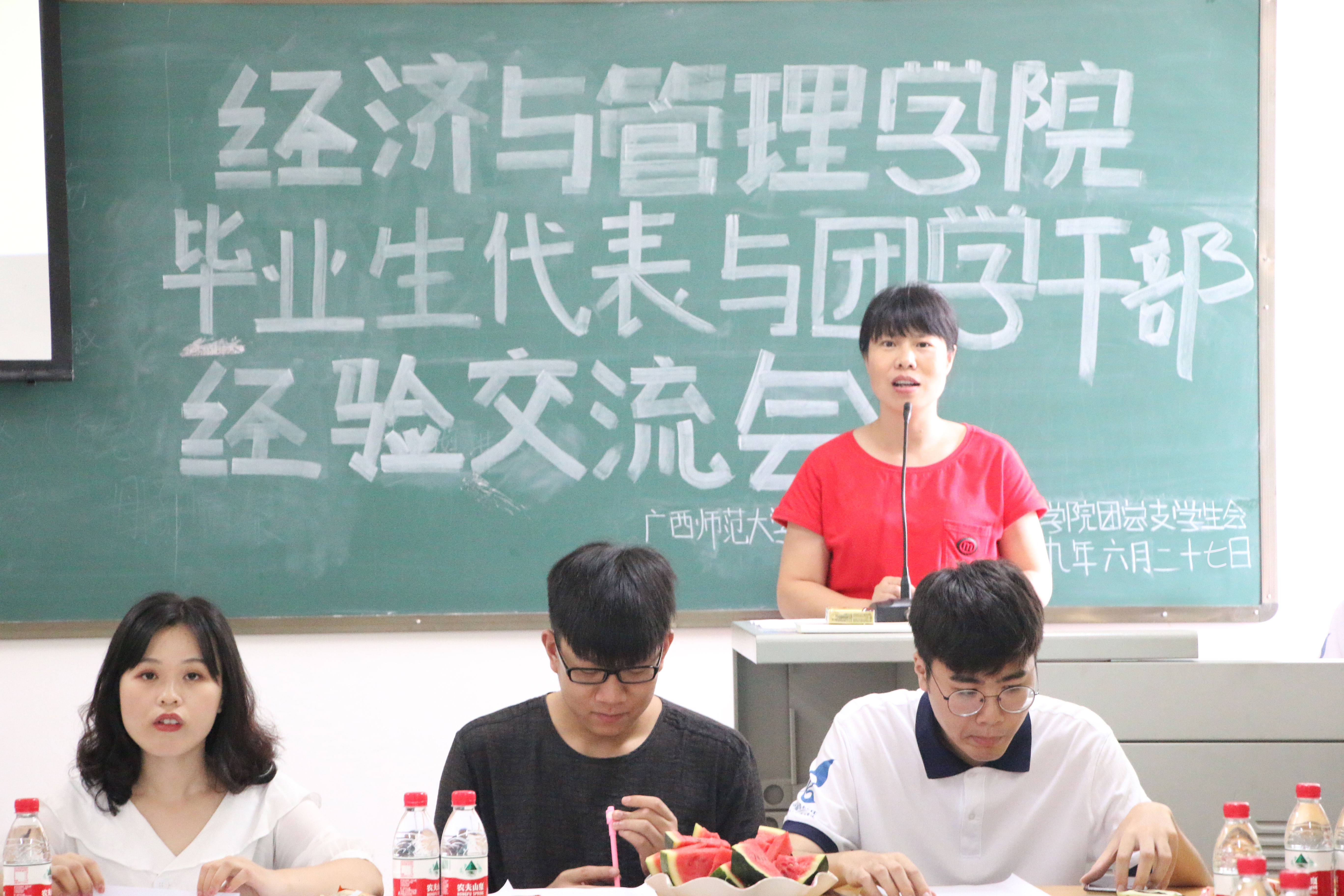 为了促进团学组织建设的规范性、了解并解答团学干部在工作和学习中的困难,提高我院团学干部的工作能力,6月27日中午,经济与管理学院团总支学生会于3409教室开展毕业生代表与团学干部经验交流会。学院团总支书记谢鹃霞老师、团总支副书记王彦文老师,第五届团学书记团汤帅文学长、方良睿学长、雷丽媚学姐,主席团范志芳学姐、谢芸伊学姐、陈衣春学姐以及现团学各部门代表出席本次交流会。