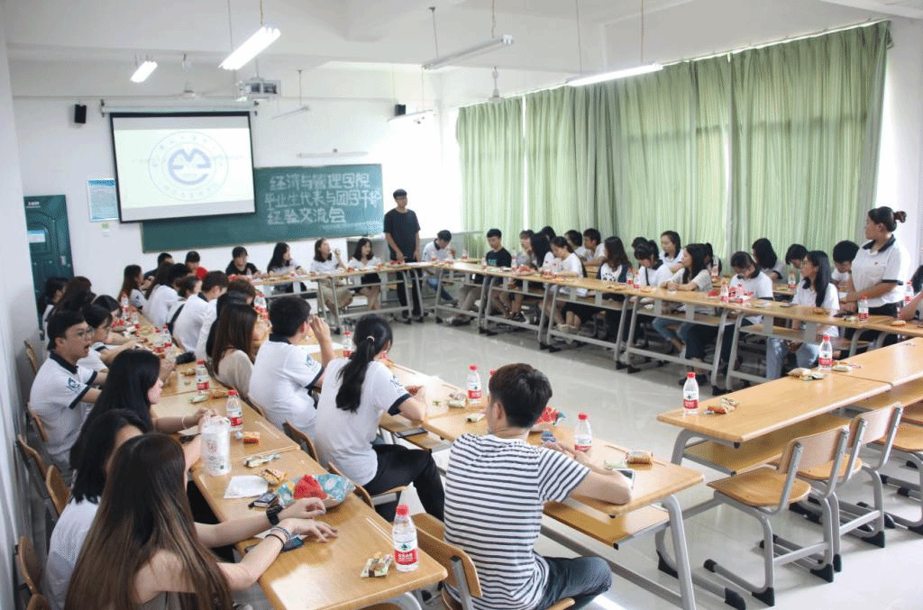 活动开始,首先通过PPT重温团学去年取得的各项工作成果,让大家在经管团学大家庭中有强烈的成就感及归属感。随后,方良睿学长还为大家分享了他在团学工作中的经验及实习经历,他表示:重温团学过去一年的点滴,有感动也有遗憾,但更多的是不舍,希望学弟学妹们在自己的团学工作中不要留下遗憾,努力充实自己,提高自己的能力。其他学长学姐也就考研、考公务员、事业单位、就业等问题一一进行了解答,给在座的学弟学妹们提供了切实可行的建议和方法,现场气氛活跃,大家纷纷表示收获颇多。会议最后,谢鹃霞老师对本次大会作了总结,她希望团学干部可以认真听取学长学姐的宝贵经验,在工作生活中注重团结、沟通,平衡好工作学习的关系,端正工作态度,为经济与管理学院团学再创佳绩,同时也祝愿学长学姐们一切顺利,前程似锦!
