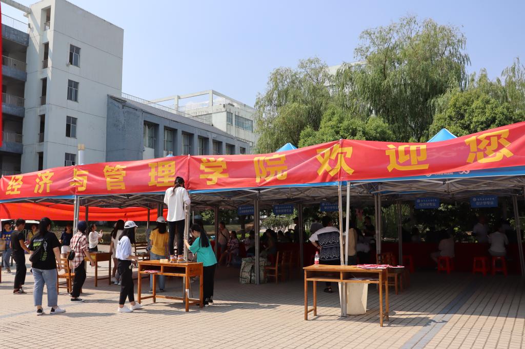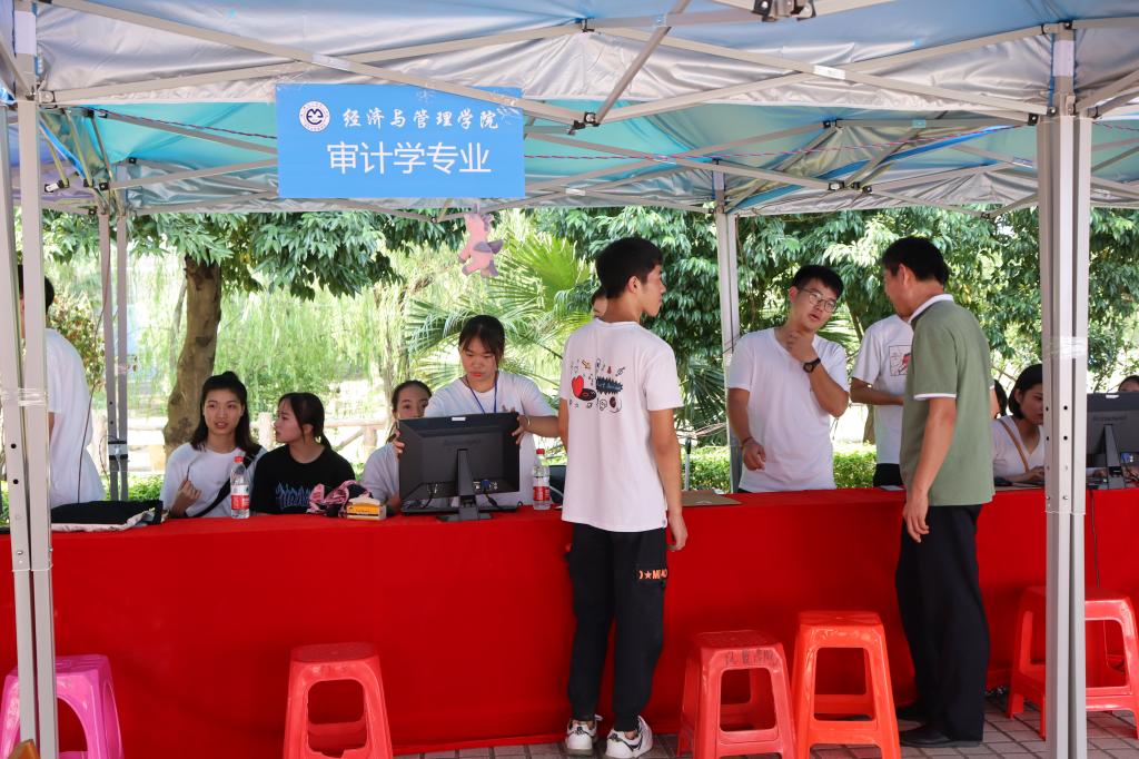 9月6日,学院领导召开新生辅导员及辅导员助理会议,再次强调新生注册的工作,要求大家都要熟悉注册流程,让新生能够有序、快速的完成注册报到工作。9月7日,团学干部集中至善广场,搭建经济与管理学院迎新大本营,挂上迎新文明标语,贴上温馨提示的牌,整齐摆放桌椅板凳,同时合理分配专业注册区与设置家长休息区,为迎新工作安全有序开展提供保障。大本营前摆放学院简介以及各专业介绍,让新生级家长加深对学院的了解和认识。