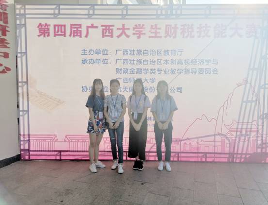 2019年9月21至9月22日,第四届广西大学生财税技能大赛区赛在广西师范大学育才校区举办。我校经济与管理学院庞仙梅、郑竹青老师带领2017级经济与管理学院学生谭姣、梁春春、冯琳、马月玲4名同学参加比赛。