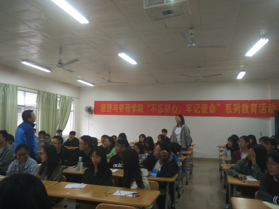 为提升我院2019级工商管理类新生对专业的理解和认识,11月13日下午,工商管理教研室、市场营销教研、财务管理教研室组织2019级工商管理类专业全体学生开展“不忘初心、牢记使命”主题教育暨2019级工商管理类新生专业解读活动。学院副院长李志献、郑竹青、19级工商管理类专业辅导员张娅、市场工商部分专任教师到场参与了此次活动,工商管理教研室吕思雅老师主持此次活动。