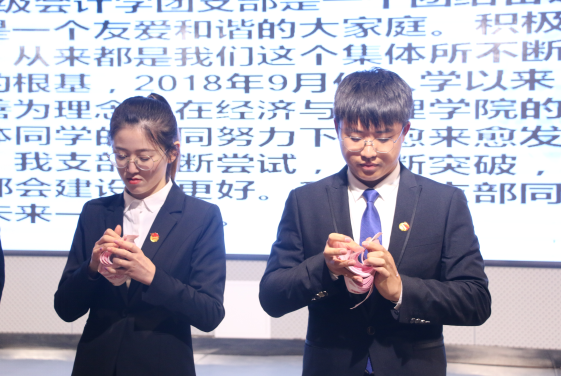 大会在奏唱共青团团歌中拉开序幕。首先,由学院党总支副书记韩磊为大会致辞。韩副书记对我院基层团支部各项工作给予肯定,对我院学子在各项活动和比赛中的突出表现予以表扬。本次考评大会共有26个团支部参加,各团支部代表依次上台,他们分别从思想建设、组织建设、学风建设、公益实践四个板块展示本学期建设成果。展示过程中,2017级财务管理第一团支部的讲解流畅、答辩自然,在讲解过程中还增设舞蹈、书法展示,展现团支部多彩的精神风貌;2018级会计学团支部通过横幅、海报以及附加点钞环节等,展示一学期各方面取得的成果,让大家感受到该团支部的魅力所在;2019级会计学第二团支部讲解员风趣的讲解,充分体现积极向上的进取精神,展现了大学生的青春活力。