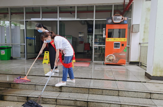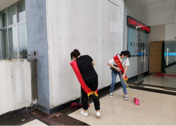 党员们在做好个人防护的情况下积极投身于清扫行动中,先后对教学楼三区的楼道及天台、图书馆A馆外的路面积水点进行排水;清扫枯枝烂叶和生活垃圾;将教学楼三区的休闲区域的桌椅摆放整齐,清理卫生死角。党员同志们勇于担当,积极主动,不怕脏、不怕累、不怕苦,在这次清扫活动中发挥了先锋带头作用。