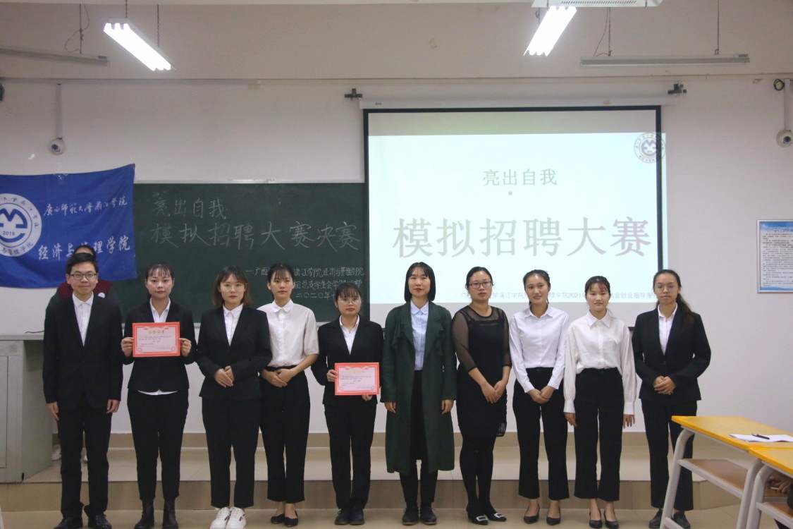 为了提高毕业生就业意识,提供一个学习职场知识、锻炼职场能力的舞台,11月17日19:00,我院在1506教室举行“亮出自我——模拟招聘大赛”决赛。经济与管理学院党总支副书记韩磊老师,辅导员王海玲老师、许莹老师、贺春先老师和郝环一老师参加此次活动并担任评委。