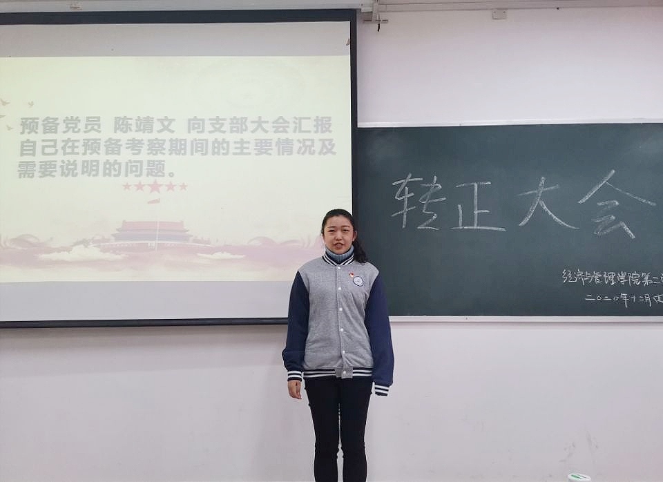 12月4日上午10:00,经济与管理学院第二学生党支部在1405教室组织召开吸收新党员和预备党员转正大会,支部全体党员参加会议。