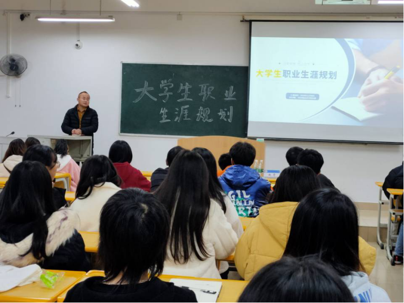 党老师首先阐述了大学生涯的基本规划,并分享了自己的职业生涯的经历和经验,以此引出今日的主题。随后党老师与同学们对自己的职业生涯规划进行探讨。党老师指出,大学生的职业规划应从早开始,同学们应该对自己有一个明确而精准的定位,从而在大学的学习生活中有目标地发展自己相应的才能。只有如此才有机会从日益激烈的竞争中找到自己前行的方向。其次,党老师又通过理想、榜样、职业和大学这四个关键词来引导大家对自己的职业选择进行更深一步的思考。