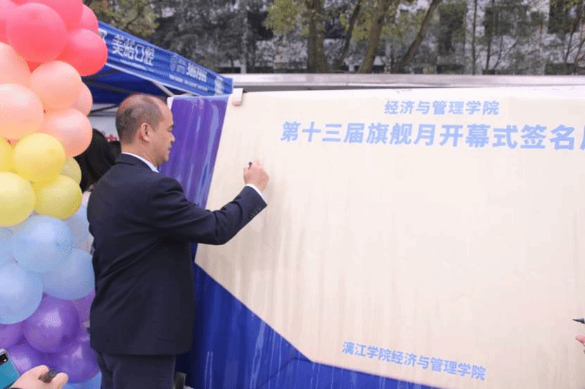 在激情四射的热场舞中,第十三届旗舰月拉开了序幕。开幕式上气氛热烈,同学们情绪高涨;舞蹈结束后,同学们纷纷聚集在宣传海报前,积极了解比赛活动。随后,各莅临的领导及老师来到签名墙前签字留念。本次旗舰月秉持“课程学习与社会实践相结合”的原则,共开展了模拟炒股大赛、银行业务技能大赛、金融营销大赛、外汇仿真大赛、会计技能大赛、财务管理与政府预算决策仿真大赛、市场营销大赛、沙盘模拟大赛、简历制作大赛、审计技能大赛十个丰富多彩的子活动,帮助同学们在比赛实践中巩固专业知识,做到知行合一,学以致用。