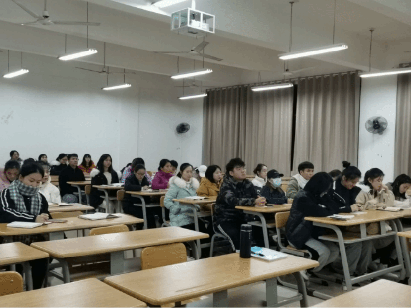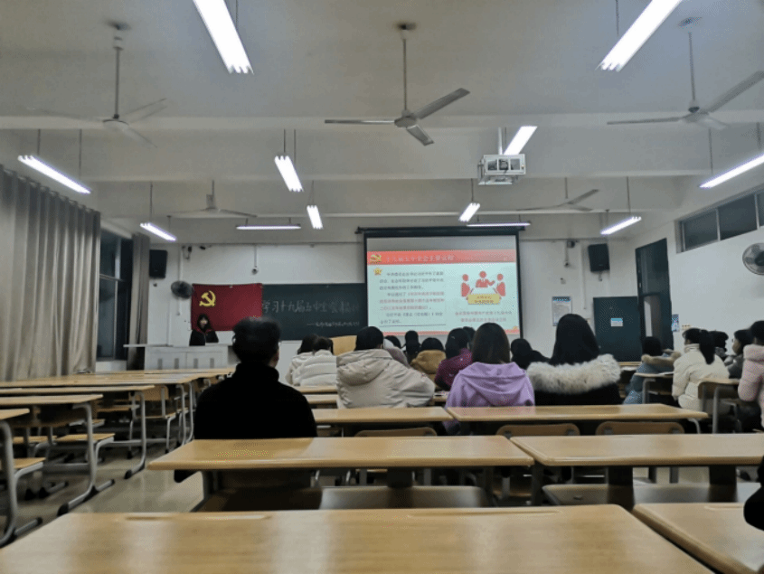 12月14日晚,经济与管理学院第五学生党支部在1412教室,开展十九届五中全会精神专题党课学习活动,由支部书记谢鹃霞主讲。
