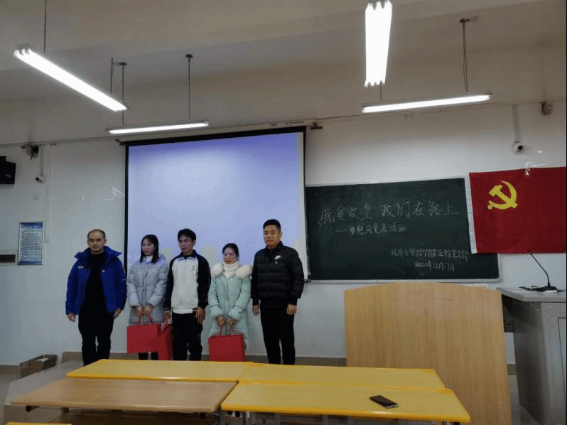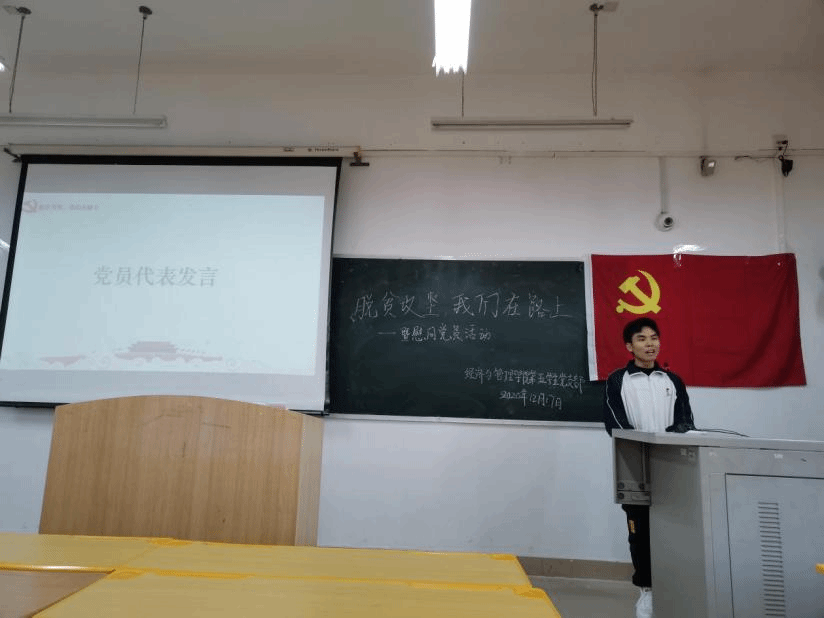 2020年是全面建成小康社会目标实现之年,是全面打赢脱贫攻坚战收官之年。为进一步助推脱贫攻坚,增强困难党员的信心和决心,12月17日,经济与管理学院第五学生党支部在1502教室开展了“脱贫攻坚,我们在路上——暨慰问困难党员主题党日活动。学院党总支书记甘华成老师、党总支副书记韩磊老师和支部书记谢鹃霞老师出席本次活动。