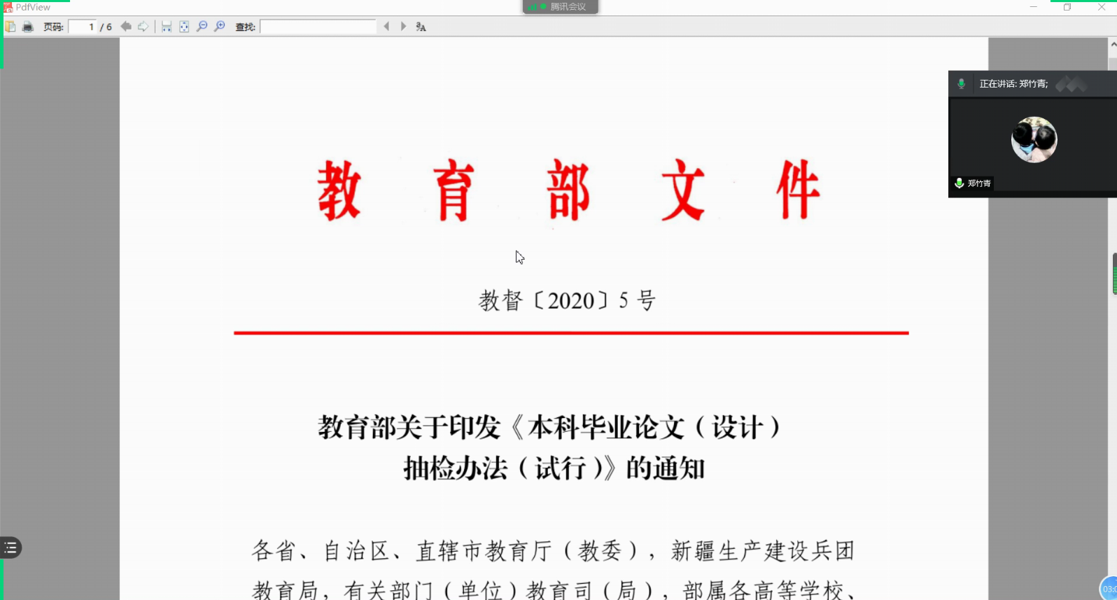 首先,副院长郑竹青带领毕业论文指导教师集中学习了教育部下发的《本科毕业论文(设计)抽检办法(试行)》文件。要求全体毕业论文指导教师必须引起高度重视,认真落实好我院关于2021届毕业生论文的有关要求,充分发挥指导教师的关键作用。