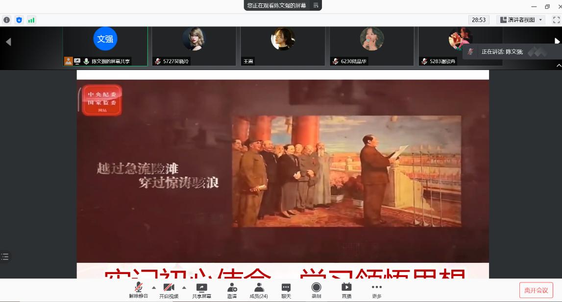 今年是中国共产党建党100周年,为引导学生党员全面了解和正确认识党的发展的伟大历程,继承和发扬党的光荣传统和优良作风,经济与管理学院第四学生党支部于3月30日20:00通过腾讯会议APP线上召开“牢记初心使命,学习领悟党史”主题党课活动。